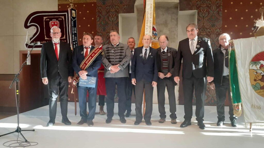 25 éves a Szlovák Festő Ipartestület – Léva, 2025  2025.10.24.-én pénteki érkezésünkkor már ünnepélyes hangulat fogadott bennünket Laci Konkoly részéről, aki nemcsak házigazdaként, hanem igazi barátként kalauzolt végig bennünket Léván a belvárosban. Elismerés neki a spontán esti városnézésért és a közös vacsoráért a környék egyik hangulatos éttermében – a Magyar csapatot nem kellett altatni, sikerült alaposan elfáradnunk! Szombat reggel szabadprogramként a Lévai várat és múzeumot csodálhattuk meg, ráadásul magyar idegenvezetéssel, ami különösen jól esett mindannyiunknak.Ebéd után következett az ünnepi program: megható beszédek, köszöntők, elismerések, majd egy igazán szép, bensőséges mise a templomban.A szállodába visszatérve egy rövid átöltözés és a „szomszédos országok” jó pálinkáinak kóstolója után beindult az igazi élet – hajnal háromig szólt a jókedv, a nevetés, és természetesen a szakmai egyeztetés sem maradt el. Összegezve: egy tartalmas, szívvel-lélekkel szervezett rendezvényen vettünk részt, Laci Konkoly köszönhetően.Külön köszönet László Németh, aki a magyar delegáció Elnökeként képviselte az IPOSZ-t.Hálásan gratulálunk a Szlovák Festő Ipartestületnek a 25 éves jubileumhoz! További sikeres közös munkát és sok hasonló, baráti találkozót kívánunk!